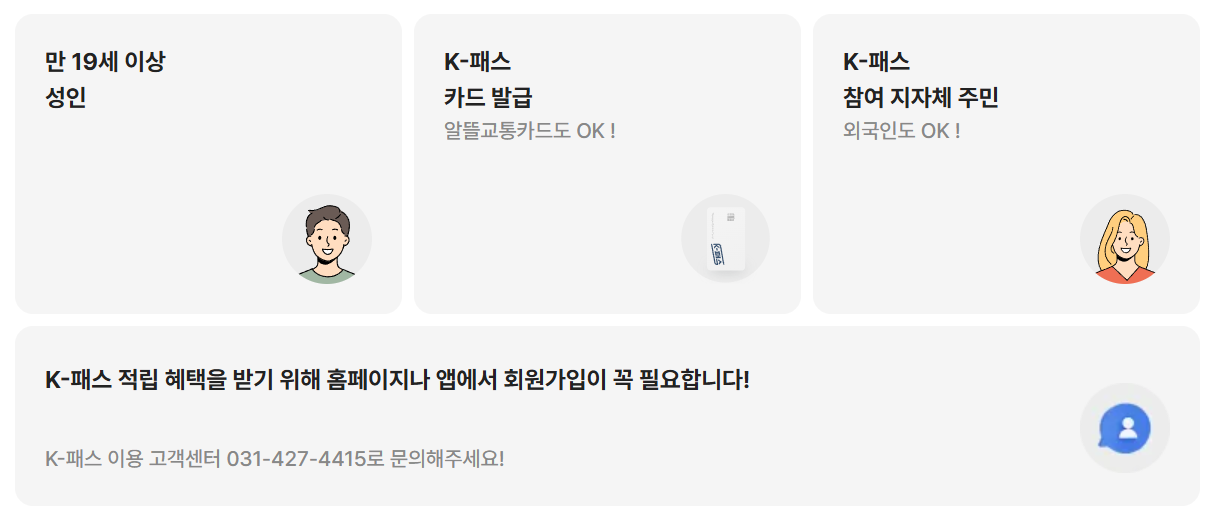 - 신청 주체: K-패스 회원가입은 본인이 직접 온라인 또는 앱에서 신청해야 합니다.